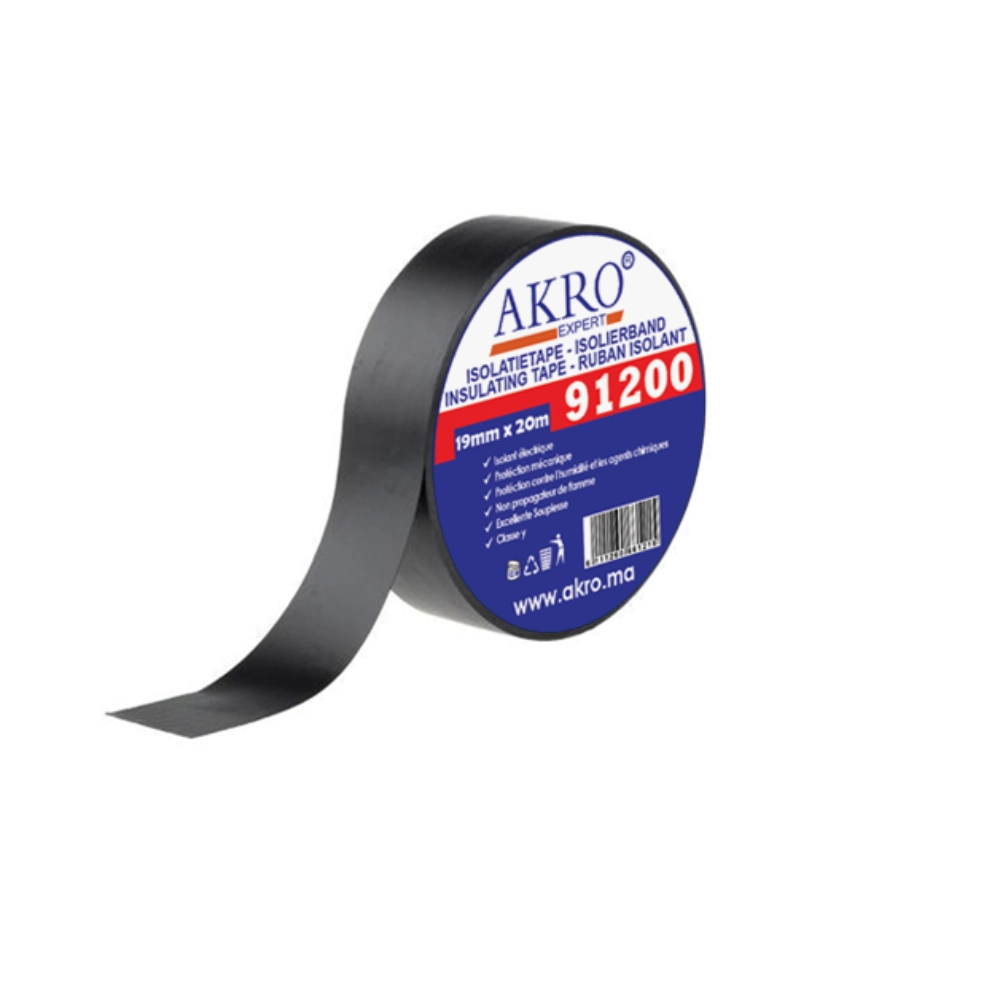 Availability: In StockRuban adhésif noir en PVC isolant électrique, haute qualité, rouleau solide.
